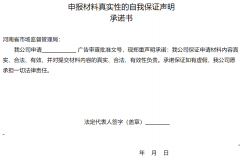 申報材料真實(shí)性的自我保證聲明承諾書(shū),河南省市場(chǎng)監督管理局: 我公司申...